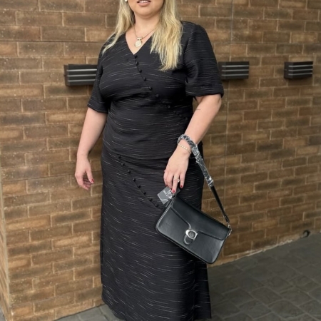 Conjunto Smel une sofisticação e praticidade em um design moderno e atemporal. Composto por colete estruturado com fechamento em botões e saia midi com bolsos e fenda frontal, é a escolha ideal para quem busca elegância aliada ao conforto do dia a dia.